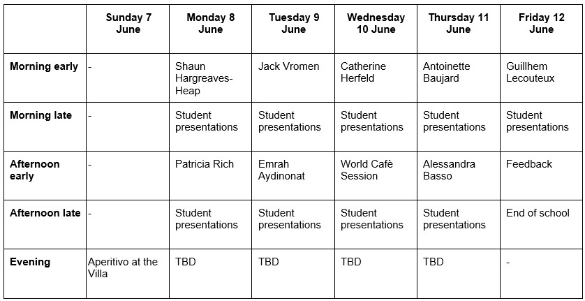 Program The program will include:Lectures by invited speakersStudent presentationsOne-to-one tutorialsWorkshopsSocial activities on the shores of Lake Como